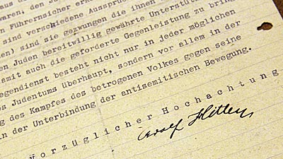 Μια επιστολή του Χίτλερ ,γραμμένη στις 16 Σεπτεμβρίου του 1919,έξι χρόνια δηλαδή πριν γράψει το “Ο Αγών μου”, θεωρείται το σημαντικότερο ντοκουμέντο για το Ολοκαύτωμα.
