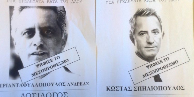Ο ΥΦΕΘΑ Κ.Σπηλιόπουλος ακόμη δεν έχει ακουστεί στο υπουργείο Άμυνας. Ωστόσο στη Πάτρα είχε τη δυσάρεστη εμπειρία να δει κι αυτός τη φωτογραφία του σε άφισα με τον βαρύ χαρακτηρισμό «δοσίλογος»,επειδή ψήφισε το μεσοπρόθεσμο. Βέβαια ανάλογες αφίσες έχουν τυπωθεί για όλους τους βουλευτές της περιφέρειας.