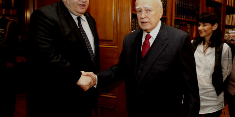 Ο ΥΕΘΑ παραουσίασε στον Πρόεδρο της Δημοκρατίας τη νέα στρατιωτική ηγεσία που προέκυψε από τις κρίσεις και με την ευκαιρία ενημέρωσε τον κ.Παπούλια για τον πόλεμο στη Λιβύη. Ωστόσο και οι δύο συμφώνησαν ότι ο πόλεμος της οικονομίας που αντιμετωπίζει η Ελλάδα είναι σημαντικός κι έχει σοβαρότατες συνέπειες για τους πολίτες οι οποίοι σύμφωνα με τον κ.Βενιζέλο «κάνουν θυσίες και εμπιστεύονται τις ΕΔ αλλά και τον θεσμό σας».