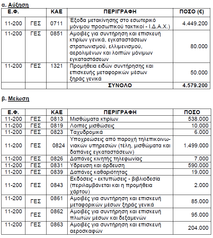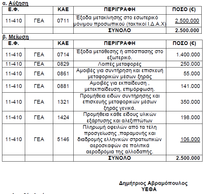 Μετά το ράβε-ξήλωνε προέκυψε ένα κονδύλι 4,45 εκατ. ευρώ για το στρατό και 2,5 εκατ. ευρώ για την αεροπορία.