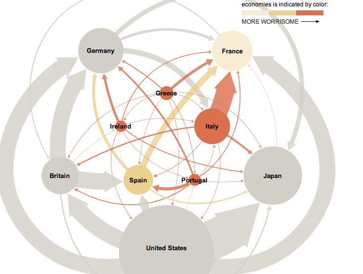 Δισεκατομμύρια από δω ,τρισεκατομμύρια από εκεί ,όλοι χρωστάνε σ΄όλους και τελικά άκρη δεν βγαίνει! Η εφημερίδα New York Times,έφτιαξε ένα διαδραστικό γράφημα στο οποίο πατώντας πάνω σε κάθε χώρα βρίσκεται που και πόσα χρωστάει! Βγαίνει συμπέρασμα; Για προσπαθήστε πατώντας εδώ.