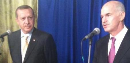 Σε μάκρος τράβηξε η συνάντηση Παπανδρέου-Ερντογάν στον Αστέρα. Κοντά τρεις ώρες κουβέντας. Μέχρι στιγμής το μόνο θέμα που δείχνει ότι πάει προς ρύθμιση είναι ο καθορισμός της υφαλοκρηπίδας .Κάτι που γράφτηκε και στο σημερινό τουρκικό Τύπο,σύμφωνα με τον οποίο μέχριι το τελος του χρόνου ίσως να έχει βρεθεί λύση. Ο κ.Παπανδρέου χαρακτήρισε μπροστά στις κάμερες «φίλο τον Ταγίπ».
