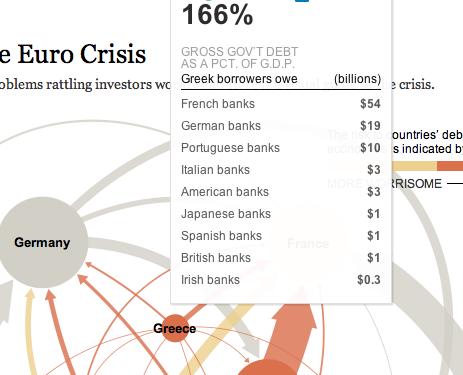 •Τυχόν κούρεμα που θα πραγματοποιηθεί θα είναι από το κόκκινο χρώμα και κάτω δηλαδή 160δις ευρώ, καθόσον αυτά της Ε.Κ.Τ αλλά και του μηχανισμού στήριξης μαζί με του ΔΝΤ δεν προβλέπονται. Ουσιαστικά σε περίπτωση ενός κουρέματος της τάξης του 50% , οι ξένες τράπεζες θα χάσουν από τα 20δις ευρώ μόλις 10δις ευρώ, ενώ οι ελληνικές τράπεζες 25δις και τα ασφαλιστικά ταμεία 40 δις.