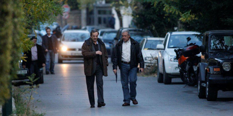 Τετ α τετ του Προέδρου της ΝΔ Αντώνη Σαμαρά με τον ΥΕΘΑ Δημήτρη Αβραμοπουλο.Ο φωτογραφικός φακός της Eurokinissis τους εντόπισε στη Κηφισιά ,να τα λένε στο δρόμο. Όπως λένε οι πληροφορίες οι δυο τους συνέφαγαν και τα είπαν.Τι είπαν δεν είμασταν στο τραπέζι να ακούσουμε,αλλά είναι βέβαιο ότι δεν συναντήθηκαν για θέματα του ΥΕΘΑ και τέλος πάντων δεν ήταν αυτό το κύριο θέμα της συζήτησης. Η υπογραφή Σαμαρά μάλλον θα ήταν πιο ψηλά στο “μενού” της συνάντησης.