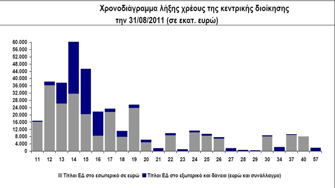 Ο πίνακας είναι από το σχέδιο προϋπολιγισμού του 2012 και δείχνει  την εξέλιξη του δημοσιου χρέου, η αποπληρωμή του οποίου προβλέπεται το 2057!