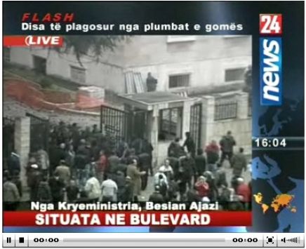 Νωρίτερα, συγκρούστηκαν με την αστυνομία στις 4 κεντρικές λεωφόρους της πρωτεύουσας της Αλβανίας. Για να αποκρούσουν τους διαδηλωτές οι αρχές έχουν βγάλει στον δρόμο οχήματα της πυροσβεστικής που πετούν νερό με πίεση.