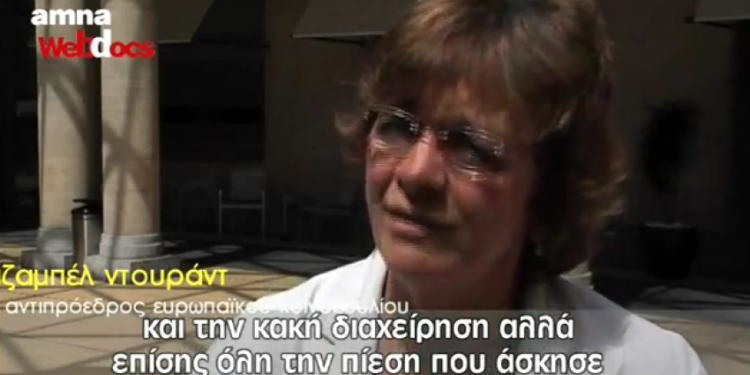 «Πρέπει να δοθεί ελπίδα στην Ελλάδα, στη νεολαία και σε αυτούς που εγκαταλείπουν τη χώρα», σημειώνει η αντιπρόεδρος του Ευρωπαϊκού Κοινοβουλίου, Ιζαμπέλ Ντουράντ, στη συνέντευξη που παραχώρησε στην Web Tv του ΑΜΠΕ.