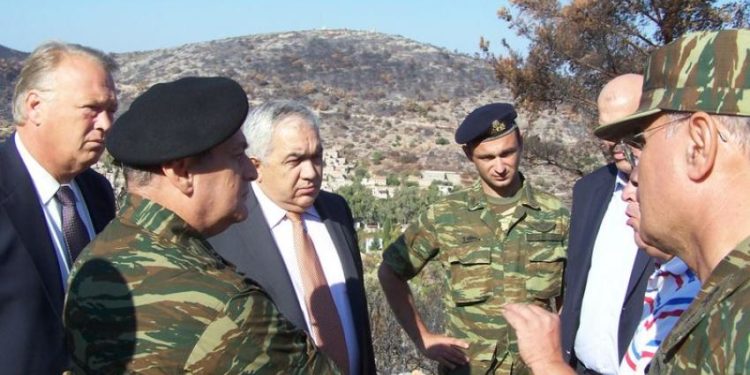 Ο υφυπουργός Εθνικής Άμυνας κ. Δημήτρης Ελευσινιώτης επισκέφθηκε σήμερα τις πληγείσες από την πρόσφατη πυρκαγιά περιοχές της νότιας Χίου, συνοδευόμενος από τους μηχανικούς που διέθεσαν οι Ένοπλες Δυνάμεις, προκειμένου να γίνουν άμεσα οι αντιπλημμυρικές μελέτες στην περιοχή.