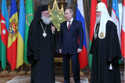 Ο Β.Πούτιν ευχαρίστησε τον αρχιεπίσκοπο Ιερώνυμο γιατί ήλθε στη Ρωσία την ημέρα της ονομαστικής εορτής του πατριάρχη Μόσχας, υπενθυμίζοντας ότι ακριβώς στο κήρυγμα των διαφωτιστών Κυρίλλου και Μεθοδίου βρίσκεται ο κοινός πολιτισμός Ελλάδας και Ρωσίας.
