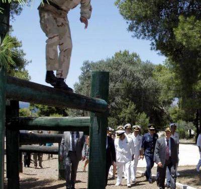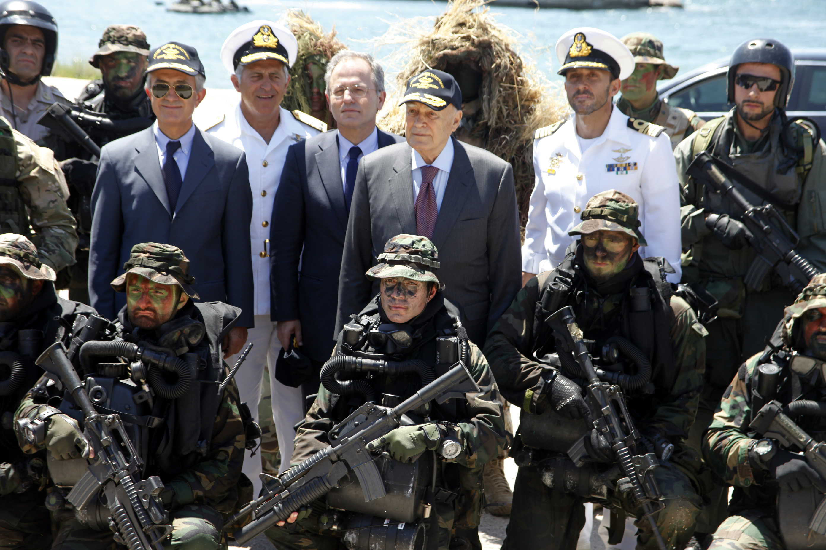 Ο Πρόεδρος συνοδευόμενος από τη πολιτική ηγεσία του ΥΕΘΑ αλλά και τον Α/ΓΕΝ αντινάυαρχο Δημ.Ελευσινιώτη, «περπάτησε’ στο στίβο μάχης της ΔΥΚ,δίπλα στα «βατράχια» που τον «έτρεχαν» και παρακολούθησε μια επίδειξη από βατραχανθρώπους.