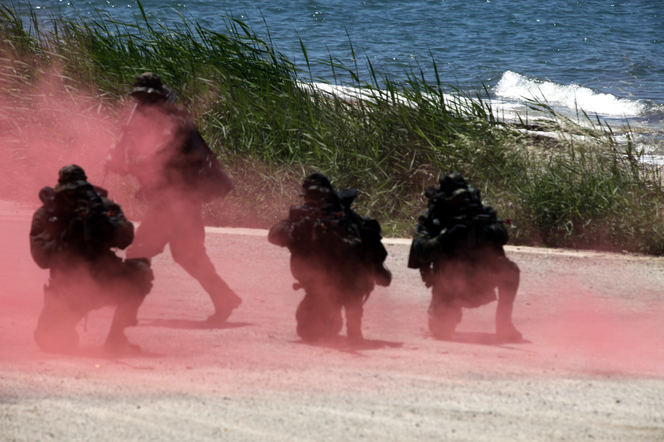 Ο Πρόεδρος συνοδευόμενος από τη πολιτική ηγεσία του ΥΕΘΑ αλλά και τον Α/ΓΕΝ αντινάυαρχο Δημ.Ελευσινιώτη, «περπάτησε’ στο στίβο μάχης της ΔΥΚ,δίπλα στα «βατράχια» που τον «έτρεχαν» και παρακολούθησε μια επίδειξη από βατραχανθρώπους.