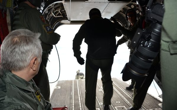 Η ρίψη έγινε και ο Γ.Ραγκούσης κατεβαίνει για να παρακολουθήσει τα υπόλοιπα μαζί με τον Α/ΓΕΣ Κ.Ζιαζιά.