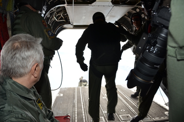Η ρίψη έγινε και ο Γ.Ραγκούσης κατεβαίνει για να παρακολουθήσει τα υπόλοιπα μαζί με τον Α/ΓΕΣ Κ.Ζιαζιά.