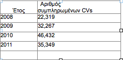 Σύμφωνα με την ευρωπαϊκή πύλη, τους πέντε μόνο πρώτους μήνες του 2011 ο αριθμός των Ελλήνων που συμπλήρωσε το ευρωπαϊκό βιογραφικό (35.349 άτομα) ξεπέρασε τον αριθμό που αντιστοιχούσε για ολόκληρο το 2009 (32.267) και αναμένεται πολύ σύντομα να υπερκεράσει και το 2010 (46.432).
