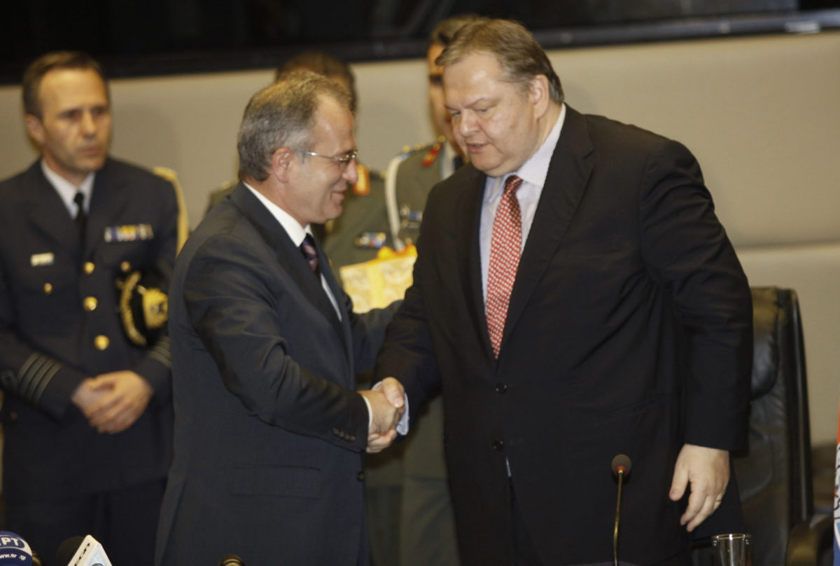 Ο από σήμερα αντιπρόεδρος της Κυβέρνησης και υποργός Οικονομικών Ευάγγελος Βενιζέλος παρέδωσε το ΥΕΘΑ στον Πάνο Μπεγλίτη, λεγοντας ότι «τώρα πάω στον πόλεμο». Ο διάδοχός του ,του ευχήθηκε: «Ευάγγελε,καλή τύχη». Θα τη χρειαστεί.