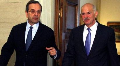 Σε συζήτηση που είχε με τους δημοσιογράφους ο κ. Σαμαράς εξήγησε ότι είχε τρεις τηλεφωνικές συνομιλίες με τον κ. Παπανδρέου. Στην πρώτη ο πρωθυπουργός του ζήτησε να στηρίξει κυβέρνηση εθνικής ενότητας και του απάντησε ότι «δεν μπορώ να δώσω στήριξη σε λάθος πολιτική». Είπε ακόμη στον κ. Παπανδρέου «να παραιτηθεί και να ορίσουν κυβέρνηση εθνικής ενότητας με πρόσωπα κοινής αποδοχής που θα είχε αποστολή να διαπραγματευθεί το Μνημόνιο και το Μεσοπρόθεσμο και να προκηρύξει εκλογές σε σύντομο χρονικό διάστημα».