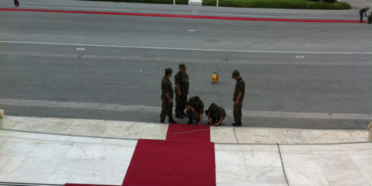 Όλα έτοιμα στο ΥΕΘΑ για να γίνει η τελετή παράδοσης-παραλαβής από τον Ε.Βενιζέλο,στον μέχρι σήμερα αναπληρωτή Πάνο Μπεγλίτη. Όπου να ΄ναι έρχονται και τα αγήματα τα οποία θα επιθεωρήσει ο Ευάγγελος Βενιζέλος ,έχοντας πια το τίτλο του «τσάρου». Της οικονομίας βεβαίως.