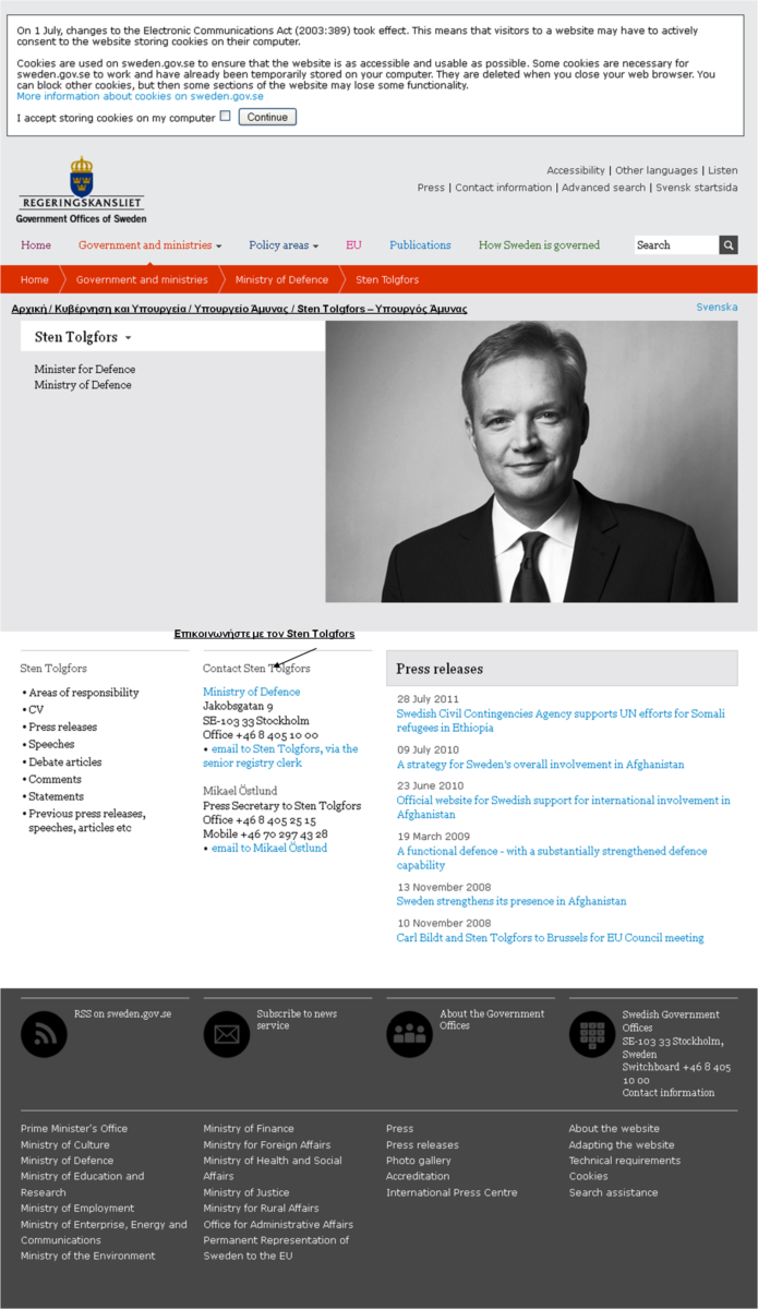 Μερικές από τις ιστοσελίδες υπουργείων Άμυνας που προβλέπουν και επικοινωνία με το προσωπικό.