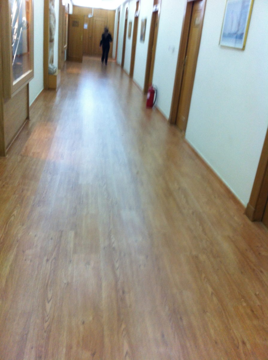 Όχι δεν πρόκειται για κανονικό παρκέ,αλλά για την «φθηνή» έκδοση της πλαστικής φλίδας που μόνο οπτικά δίνει την αίσθηση του ξύλου.Συνεπώς το κόστος δεν ήταν μεγάλο αλλά το ερώτημα ήταν αν υπήρχε ανάγκη έστω γι΄ αυτό το μικρό κόστος.Προφανώς όχι ,αν και όταν «πατήσαμε» το νέο πάτωμα μας πέρασε από το μυαλό ότι η αλλαγή έγινε για να ακούγονται καλύτερα …οι προσοχές των στρατονόμων.Όσο να ΄ναι άλλο ήχο έχει το άρβυλο πάνω στο ξύλο -έστω και το «πλαστικοποιημένο» κι άλλο πάνω στο πλακάκι.