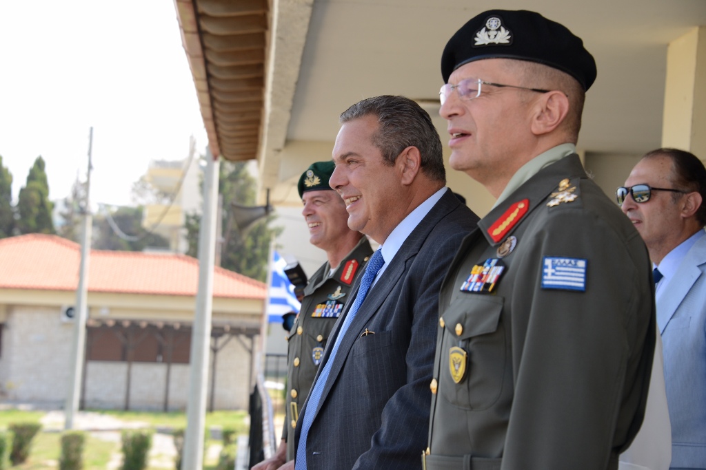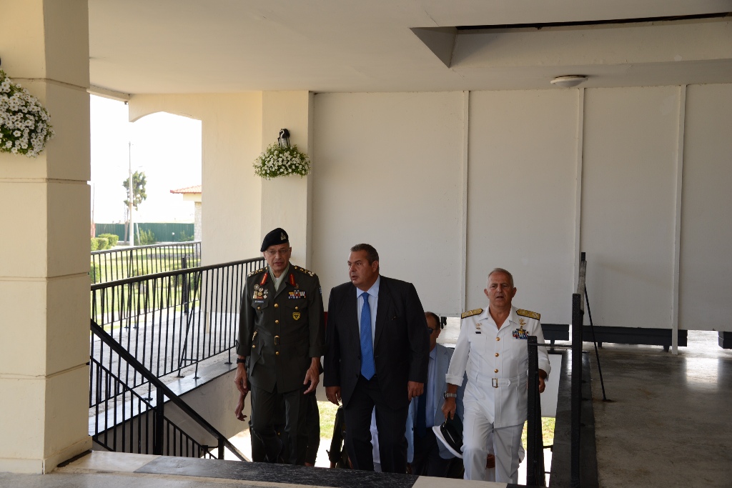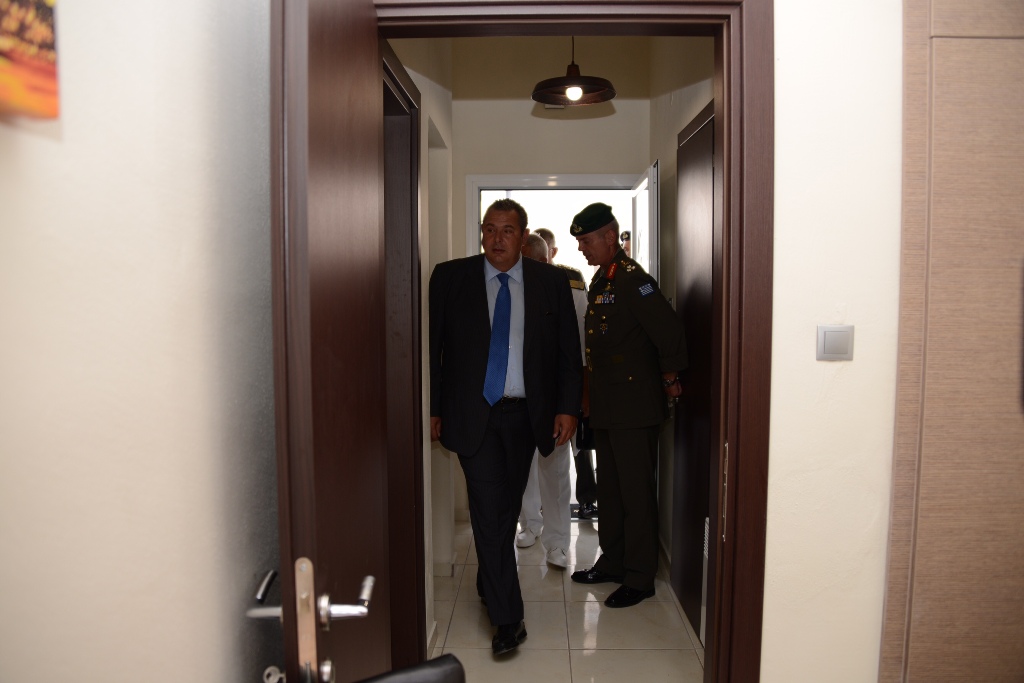 Ο Υπουργός Εθνικής Άμυνας Πάνος Καμμένος συνοδευόμενος από τον Αρχηγό ΓΕΕΘΑ Ναύαρχο Ευάγγελο Αποστολάκη ΠΝ και τον Αρχηγό ΓΕΣ Αντιστράτηγο Αλκιβιάδη Στεφανή παρέστη στην τελετή εγκαινίων συγκροτήματος 19 διαμερισμάτων στη Θεσσαλονίκη για τους σπουδαστές της Ανώτατης Διακλαδικής Σχολής Πολέμου (ΑΔΙΣΠΟ).