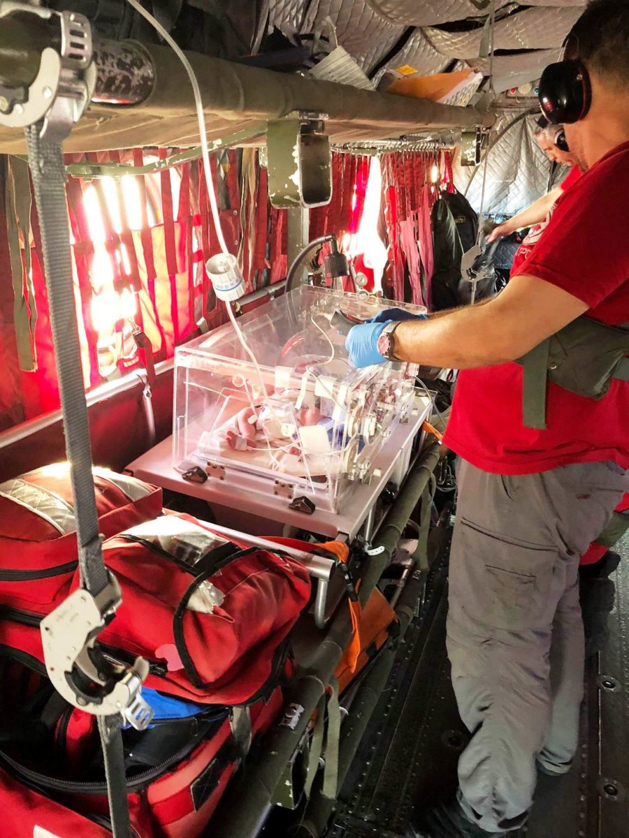 Αφορούσε στην διακομιδή ενός νεογνού, μόλις πέντε ωρών, με ταχύπνοια το οποίο μεταφέρθηκε με ασφάλεια στο νοσηλευτικό ίδρυμα του νησιού. Το συγκλονιστικό βίντεο κάνει το γύρο του διαδικτύου.