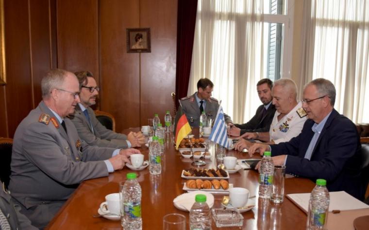 Στη συνάντηση παρέστησαν ο Αρχηγός ΓΕΕΘΑ Nαύαρχος Ευάγγελος Αποστολάκης ΠΝ και ο πρέσβης της Γερμανίας στην Αθήνα Jens Ploetner.