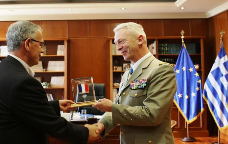 Ο Αναπληρωτής Υπουργός Εθνικής Άμυνας Παναγιώτης Ρήγας, συναντήθηκε σήμερα Παρασκευή 15 Φεβρουαρίου 2019, στο γραφείο του στο ΥΠΕΘΑ, με τον Αρχηγό του Γενικού Επιτελείου των Ενόπλων Δυνάμεων (ΕΔ) της Γαλλίας, General Francois Lecointre, ο οποίος πραγματοποιεί επίσημη επίσκεψη στην Ελλάδα προσκεκλημένος του Έλληνα ομολόγου του.