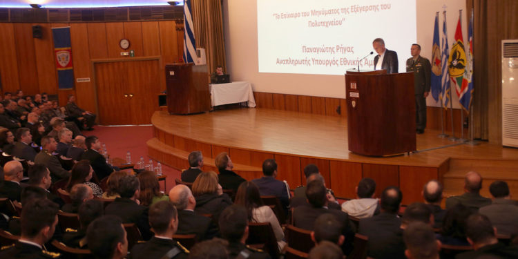 Το υπουργείο Εθνικής Άμυνας, με αφορμή την 45η επέτειο της εξέγερσης του Πολυτεχνείου, διοργάνωσε σήμερα εκδήλωση στο αμφιθέατρο της Στρατιωτικής Σχολής Ευελπίδων στη Βάρη.