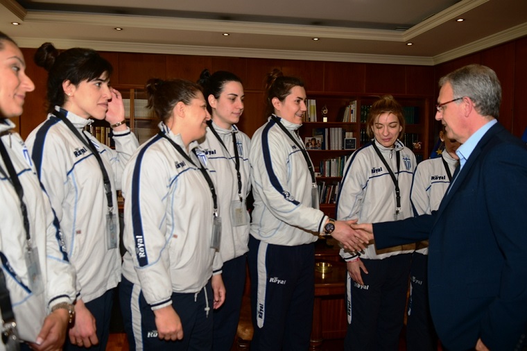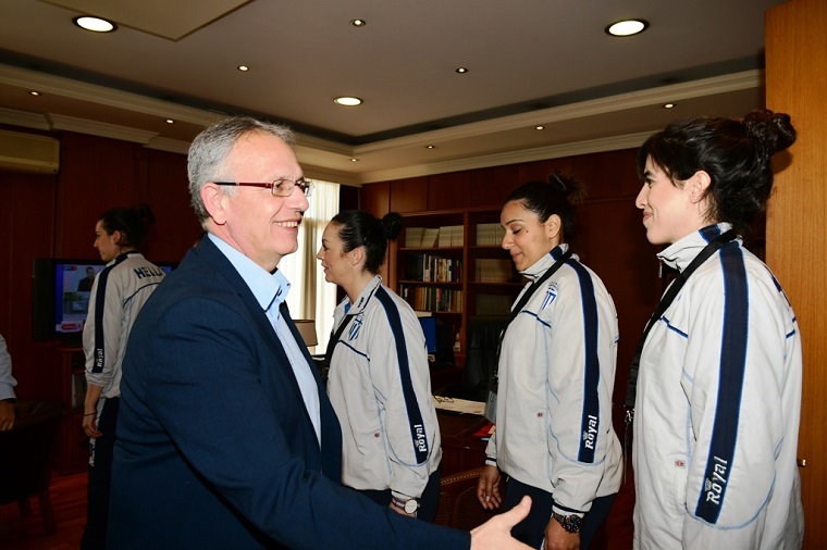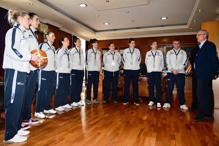 Ο Αναπληρωτής Υπουργός Εθνικής Άμυνας Παναγιώτης Ρήγας δέχθηκε σήμερα στο γραφείο του στο ΥΠΕΘΑ την Εθνική Ομάδα Καλαθοσφαίρισης Γυναικών Ενόπλων Δυνάμεων. Στη διάρκεια της συνάντησης συζητήθηκαν θέματα που αφορούν στις δραστηριότητες και στις προοπτικές της ομάδας. Ο ΑΝΥΕΘΑ εξέφρασε την υποστήριξή του και διαβεβαίωσε τις αθλήτριες και τον προπονητή τους για την συμπαράστασή του.