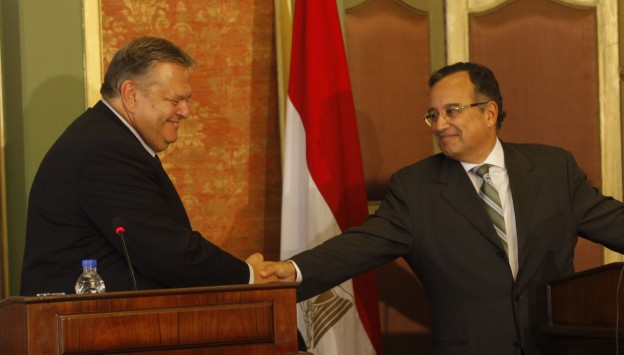 Αντιστοίχως, δε ο κ.Βενιζέλος παρατήρησε πως η εξυπηρέτηση του «κοινού συμφέροντος των δύο χωρών στο πλαίσιο του διεθνούς δικαίου, δεν γεννά εχθρική προδιάθεση προς άλλη χώρα». Αναφορικά με τη Συρία, ο κ. Βενιζέλος σημείωσε ότι στο άτυπο συμβούλιο υπουργών Εξωτερικών (αύριο στο Βίλνιους) θα συζητηθούν οι πρόσφατες εξελίξεις, ενδεχομένως παρουσία του αμερικανού υπουργού Εξωτερικών Τζον Κέρι. Ο Έλληνας υπουργός Εξωτερικών επανέλαβε την «απερίφραστη καταδίκη του για τη χρήση των χημικών όπλων» και την ανάγκη διαμόρφωσης μιας απάντησης από πλευράς της διεθνούς κοινότητας, «που να διαφυλάσσει και να προωθεί μια διαδικασία πολιτικής επίλυσης». Ως προς τις διμερείς σχέσεις, ο Αιγύπτιος αξιωματούχος υπογράμμισε τη βούλησή του για την περαιτέρω ανάπτυξή τους, ενώ ο κ. Βενιζέλος τόνισε πως οι διμερείς σχέσεις «έχουν έναν ευρύτερο ορίζοντα – στο εμπορικό και οικονομικό πεδίο, στην εξωτερική πολιτική, την άμυνα και την ασφάλεια», αναφέροντας πως συζητήθηκε και η υλοποίηση μιας κοινής πρωτοβουλίας, με τη συμμετοχή του συνόλου των υπουργών Εξωτερικών των αραβικών χωρών. Ο υπουργός Εξωτερικών Ευ. Βενιζέλος συναντήθηκε σήμερα με τον Πρόεδρο της χώρας Άντλι Μανσούρ, τον πρωθυπουργό Χ. Ελ Μπέμπλάουι, το ΓΓ του Αραβικού Συνδέσμου Ν.Ελ Αραμπέι, τον ομόλογό του Ν. Φάχμι και τέλος αναμένεται να παρασημοφορηθεί από τον Πατριάρχη Αλεξανδρείας Θεόδωρο ΙΙ.