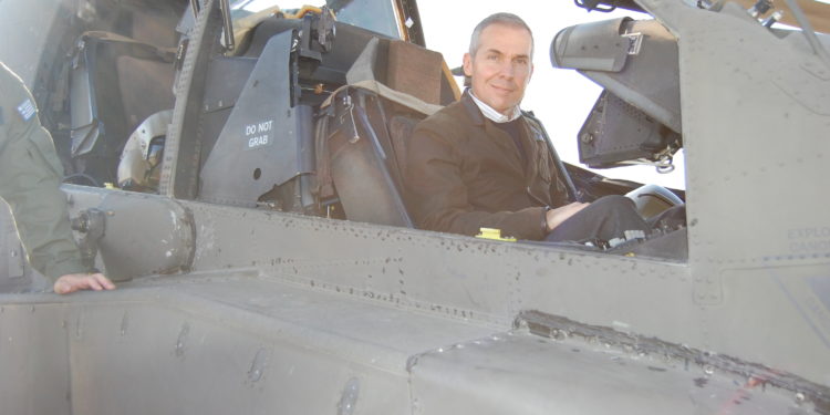 Ο Υφυπουργός Εθνικής Άμυνας πραγματοποίησε επίσκεψη στην 1η Ταξιαρχία Αεροπορίας Στρατού (1η ΤΑΞΑΣ) στο Στεφανοβίκειο Μαγνησίας και ενημερώθηκε για την αποστολή της 1ης ΤΑΞΑΣ και στη συνέχεια μετέβη στην πίστα των επιθετικών ελικοπτέρων ΑΗ-64 Α Apache. Δεν έχασε λοιπόν την ευκαιρία να μπει σ΄ ένα επιθετικό ελικόπτερο.