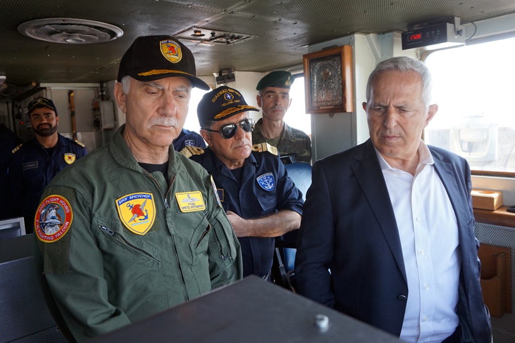 Τον Υπουργό Εθνικής Άμυνας συνόδευσαν ο Αρχηγός ΓΕΕΘΑ, Πτέραρχος Χρήστος Χριστοδούλου, ο Αρχηγός ΓΕΝ, Αντιναύαρχος Νικόλαος Τσούνης ΠΝ και ο Αρχηγός Στόλου, Αντιναύαρχος Στυλιανός Πετράκης ΠΝ.