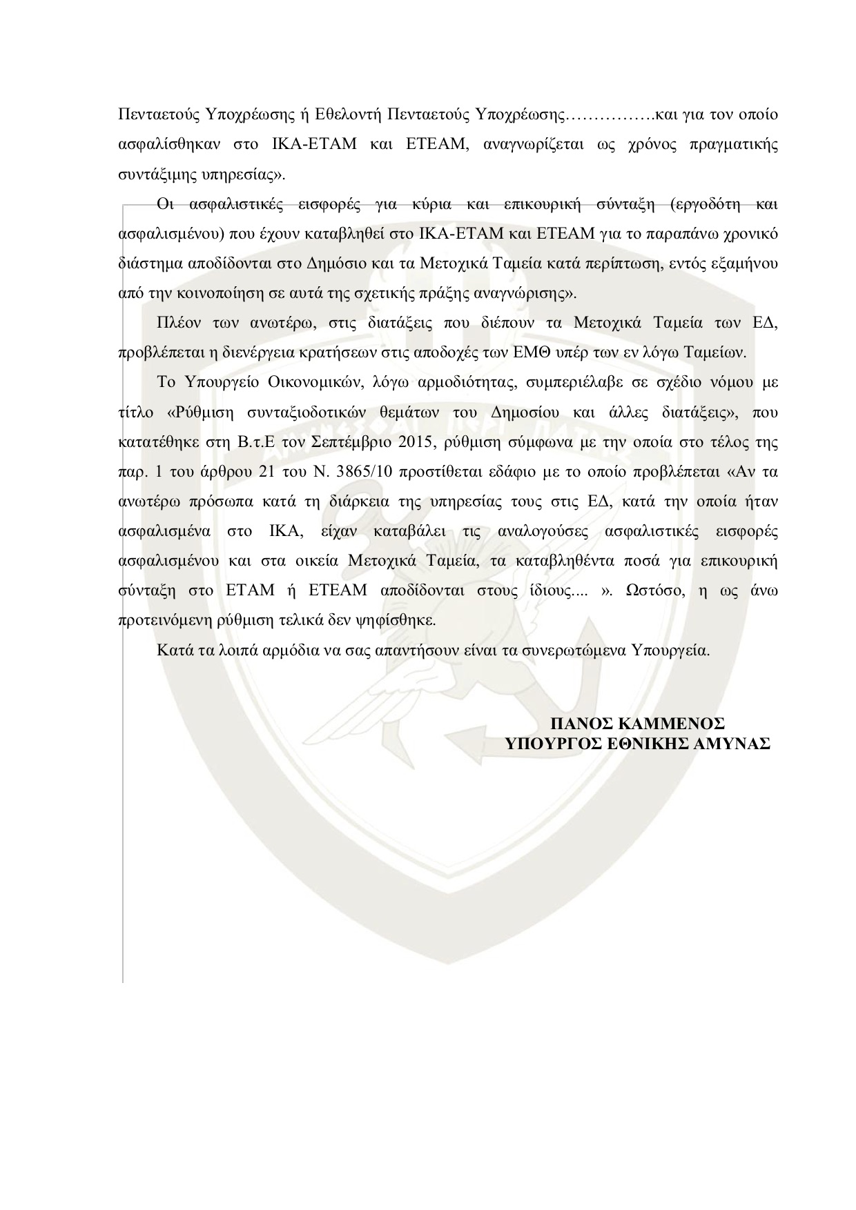 σύνταξη στο ΕΤΑΜ ή ΕΤΕΑΜ αποδίδονται στους ίδιους…. ». Ωστόσο, η ως άνω προτεινόμενη ρύθμιση τελικά δεν ψηφίσθηκε.