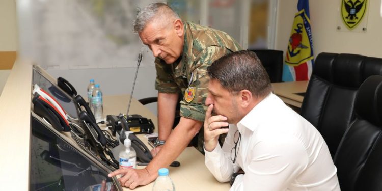 Ο Υφυπουργός Εθνικής Άμυνας κ. Νικόλαος Χαρδαλιάς, συνοδευόμενος από τον Αρχηγό ΓΕΕΘΑ Στρατηγό Κωνσταντίνο Φλώρο, επισκέφθηκε, σήμερα Τετάρτη 10 Αυγούστου 2022, το Εθνικό Κέντρο Επιχειρήσεων του Γενικού Επιτελείου Εθνικής Άμυνας (ΓΕΕΘΑ/ΕΘΚΕΠΙΧ), όπου ενημερώθηκε για την εξέλιξη της ευρείας επιχείρησης έρευνας και διάσωσης, η οποία λαμβάνει χώρα από τις πρώτες πρωινές ώρες στη θαλάσσια περιοχή νότια της νήσου Ρόδου.