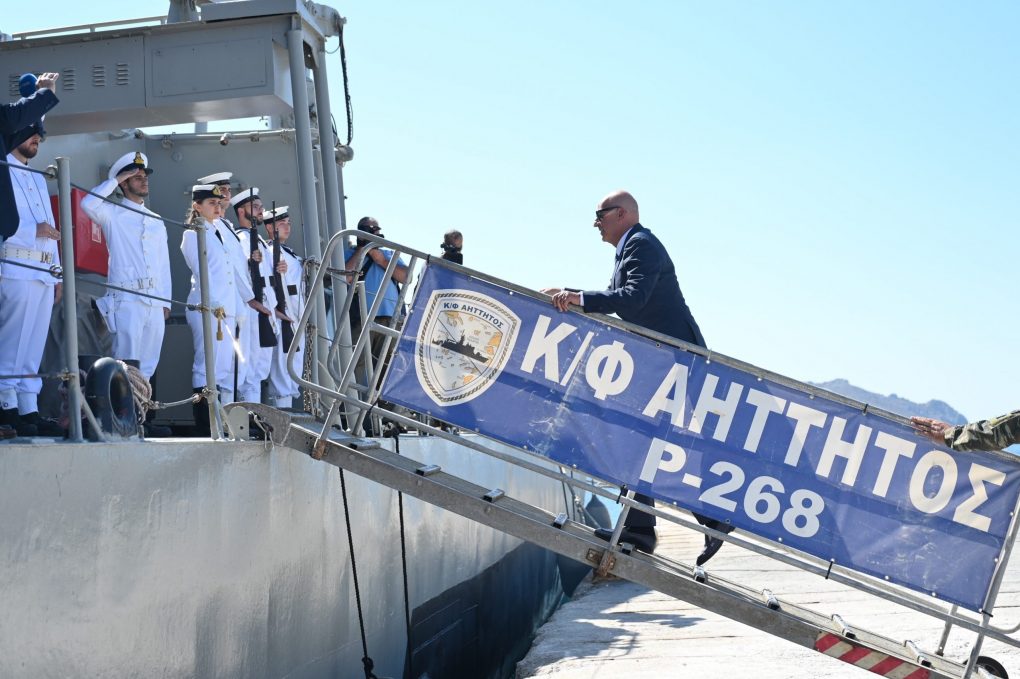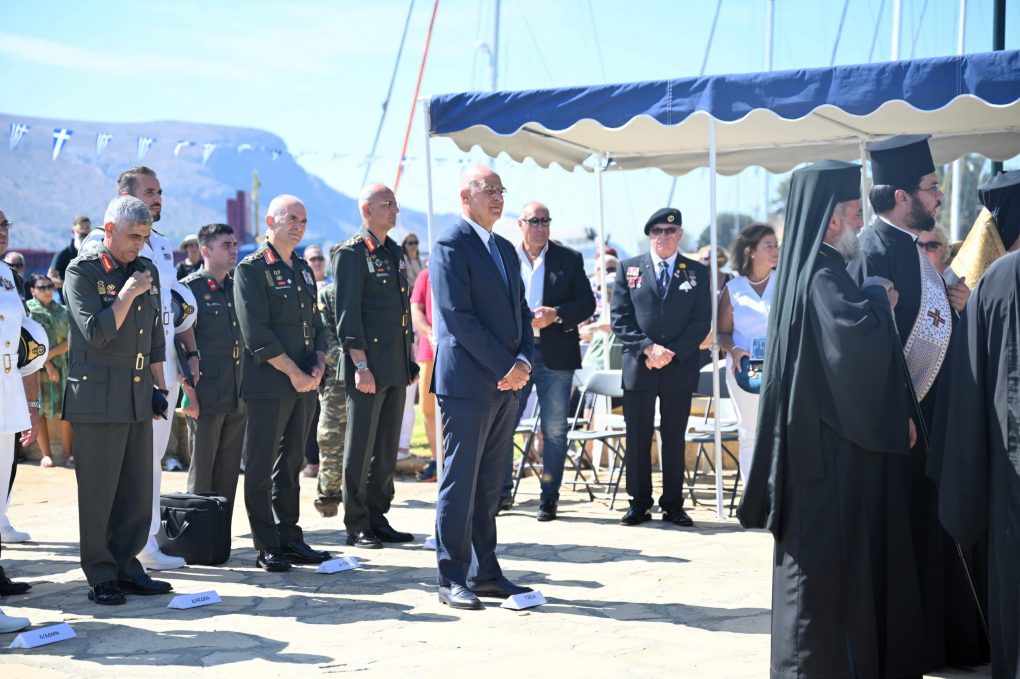 Ο Νίκος Δένδιας βρέθηκε στη Λέρο για τις εκδηλώσεις μνήμης για την 81η επέτειο από τη βύθιση του Α/Τ «Βασίλισσα Όλγα» από γερμανικά βομβαρδιστικά αεροσκάφη, η οποία είχε ως αποτέλεσμα τον θάνατο του Κυβερνήτη Πλωτάρχη Γεώργιου Μπλέσσα και άλλων 69 μελών του πληρώματος.
