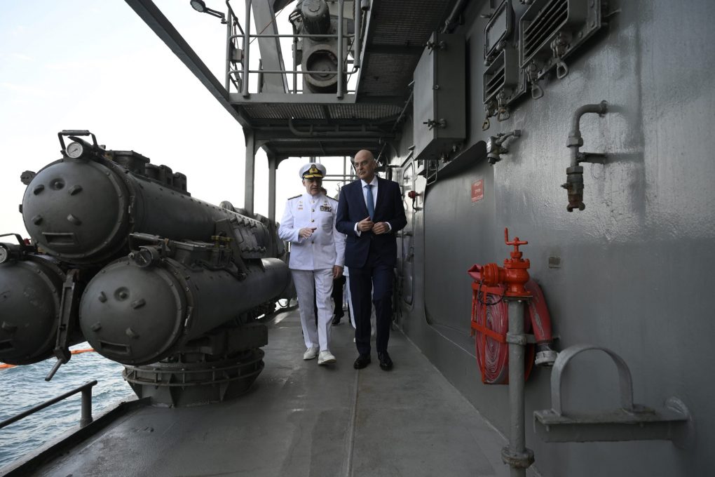 Ο κ. Δένδιας ενημερώθηκε από τον Κυβερνήτη της Φρεγάτας «ΥΔΡΑ» Αντιπλοίαρχο Ι. Μαντζούρη ΠΝ σχετικά με την αποστολή της και συνομίλησε με τα στελέχη και το πλήρωμα της.