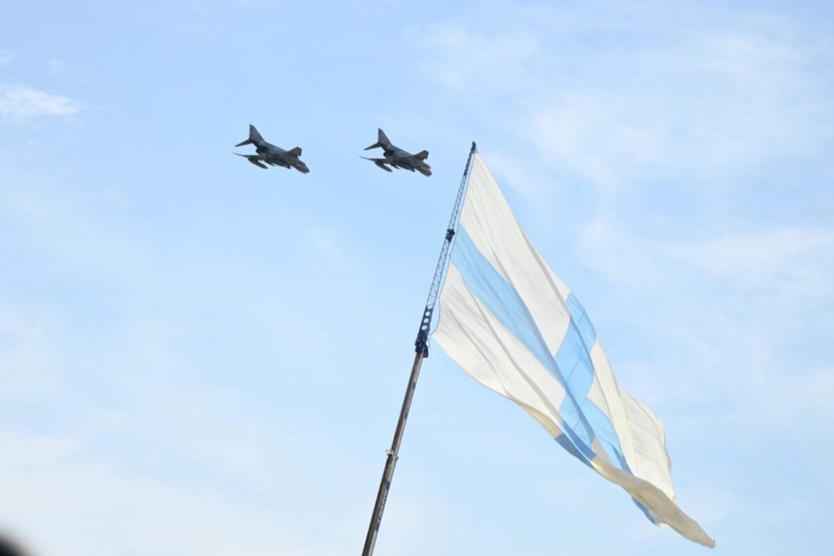 Στη συνέχεια, ο κ. Δένδιας κατέθεσε στέφανο στον Κήπο των Ηρώων και παρακολούθησε την Επετειακή Παρέλαση Πολιτικών και Στρατιωτικών Τμημάτων, καθώς και την Αεροπορική Επίδειξη αεροσκάφους F-16 «Ζευς».