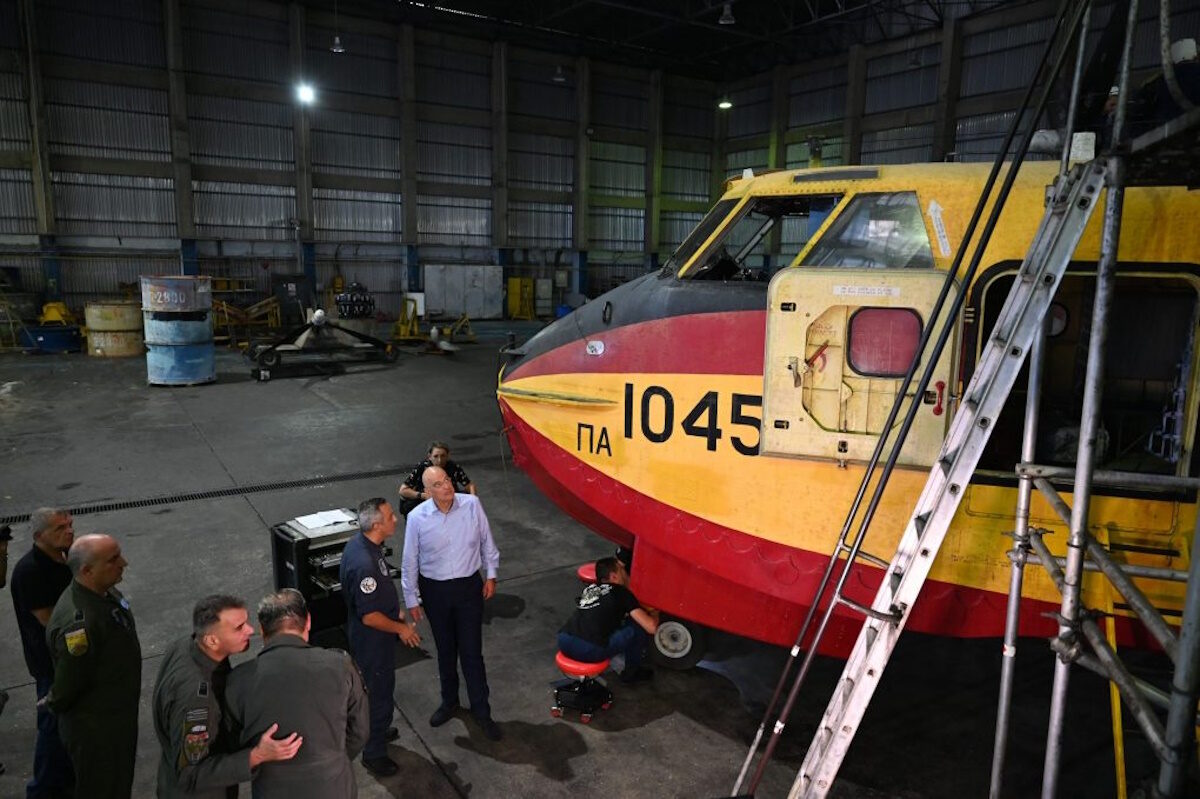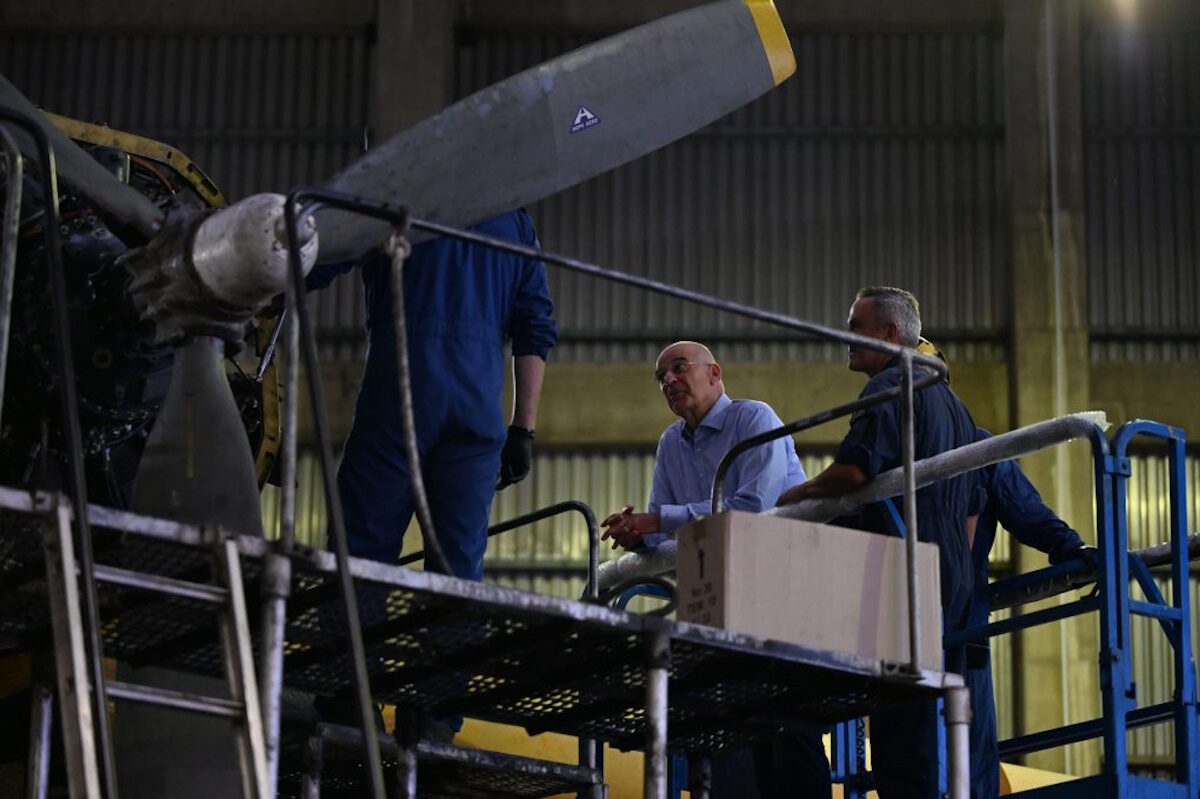 Ο Νίκος Δένδιας παρακολούθησε επίδειξη-παρουσίαση των Αεροσκαφών CL – 215/415 και περιηγήθηκε στη Μοίρα Συντηρήσεως Αεροσκαφών, όπου συνομίλησε με ιπτάμενο, τεχνικό και διοικητικό προσωπικό.