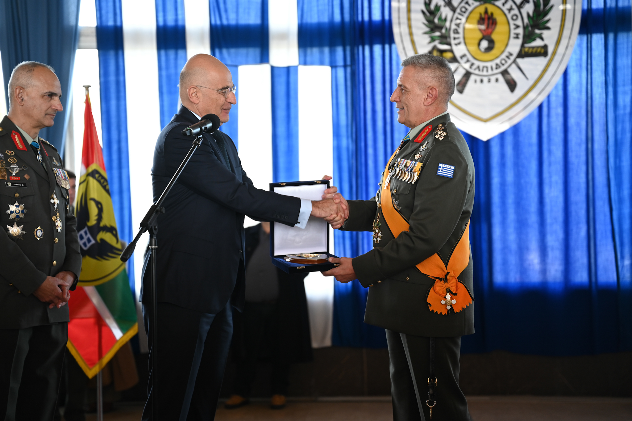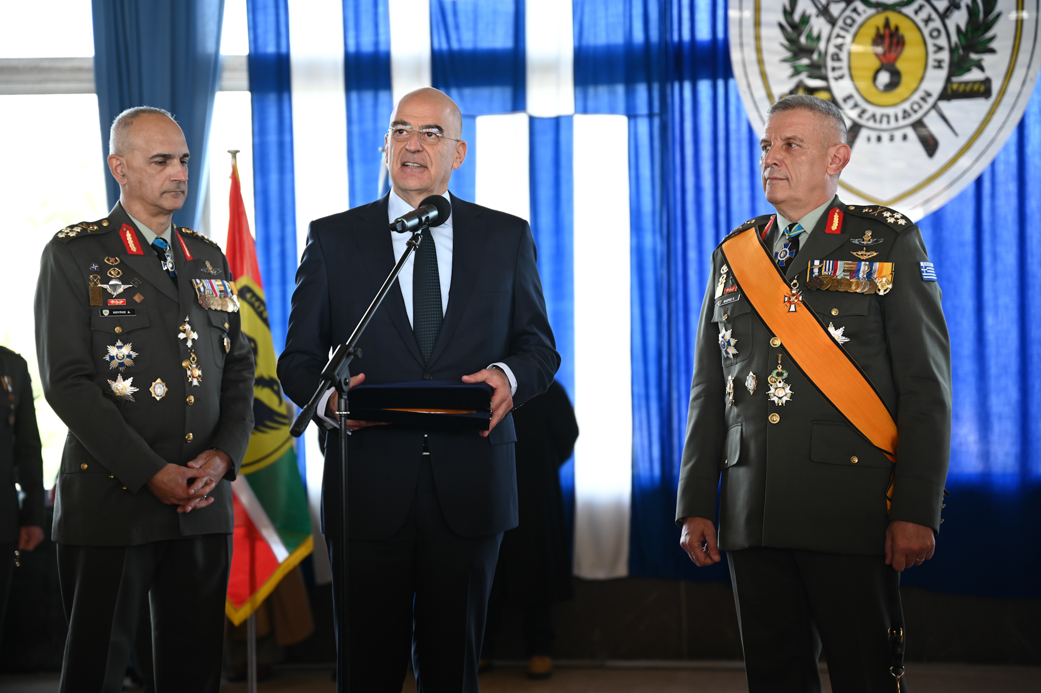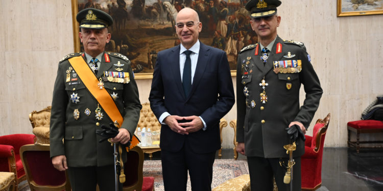 Ο Υπουργός Εθνικής Άμυνας (ΥΕΘΑ) Νίκος Δένδιας, παρέστη σήμερα, Τρίτη 16 Ιανουαρίου 2024, ως εκπρόσωπος της Κυβέρνησης, στην τελετή παράδοσης – παραλαβής καθηκόντων, μεταξύ του απερχόμενου Αρχηγού Γενικού Επιτελείου Εθνικής Άμυνας (ΓΕΕΘΑ) Στρατηγού Κωνσταντίνου Φλώρου και του νέου Αρχηγού, Στρατηγού Δημήτριου Χούπη, η οποία πραγματοποιήθηκε στη Στρατιωτική Σχολή Ευελπίδων.