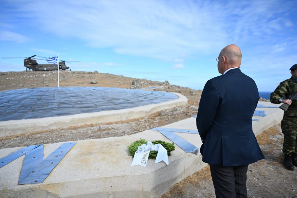 Τέλος, ο κ. Δένδιας μετέβη στο Μνημείο του Υποσμηναγού (Ι) Νικόλαου Σιαλμά όπου κατέθεσε στέφανο.