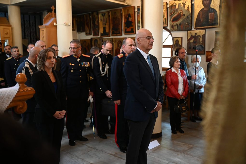 Ο κ. Δένδιας παρακολούθησε τη Δοξολογία στον Ιερό Ναό Γέννησης του Χριστού, την οποία τέλεσε ο Πανοσιολογιώτατος Αρχιμανδρίτης Κύριλλος, ως εκπρόσωπος του Σεβασμιώτατου Μητροπολίτη Λήμνου και Αγίου Ευστρατίου κ.κ. Ιερόθεου.