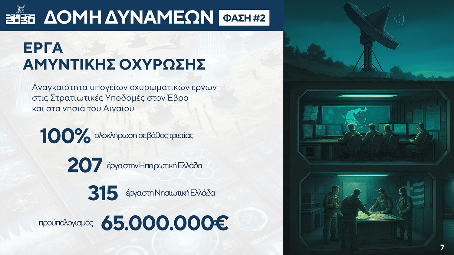 Εξάλλου, όπως είχε αναφέρει χθες το OnAlert.gr, εντός τριετίας προβλέπεται η ολοκλήρωση 207 υπόγειων οχυρωματικών έργων στην ηπειρωτική και 315 στη νησιωτική Ελλάδα.