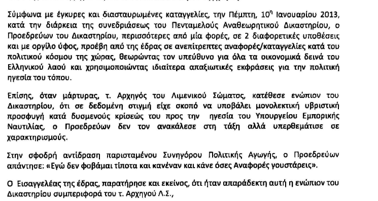 Στρατιωτικός δικαστής κατακεραύνωσε από την έδρα του Πενταμελούς Αναθεωρητικού Δικαστηρίου το πολιτικό κόσμο της χώρας και προκάλεσε την αντίδραση βουλευτή της ΝΔ ,ο οποίος με ερώτησή του προς τον ΥΕΘΑ Πάνο Παναγιωτόπουλο, ζητά να ελεγθεί ο δικαστής.