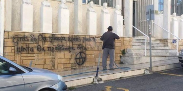 Στόχος βανδαλισμού έγινε το Στρατολογικό Γραφείο Ηρακλείου που εδρεύει στις Πατέλες Ηρακλείου, αργά το βράδυ όπως λένε οι πληροφορίες, αφού άγνωστοι έγραψαν συνθήματα σε εξωτερικά τμήματα του κτιρίου και εξαφανίστηκαν στη συνέχεια, με τις αρμόδιες αρχές να διεξάγουν έρευνα και να ευελπιστούν πως οι κάμερες ασφαλείας στον ευρύτερο χώρο ενδεχομένως να προσφέρουν κάποια παραπάνω στοιχεία.