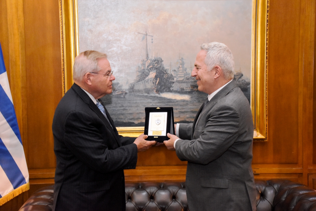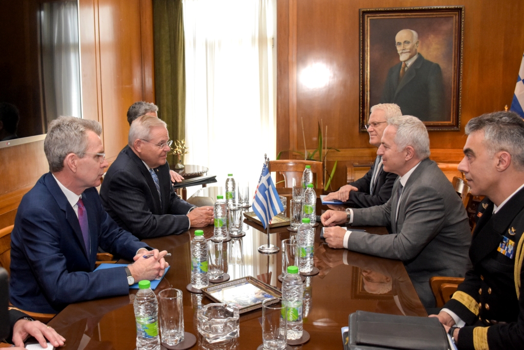 Ο Υπουργός Εθνικής Άμυνας Ευάγγελος Αποστολάκης, τη Μ. Δευτέρα 22 Απριλίου 2019, συναντήθηκε στο γραφείο του με τον Γερουσιαστή Bob Menendez, επικεφαλής των Δημοκρατικών στην Επιτροπή Εξωτερικών Υποθέσεων της Γερουσίας των ΗΠΑ.