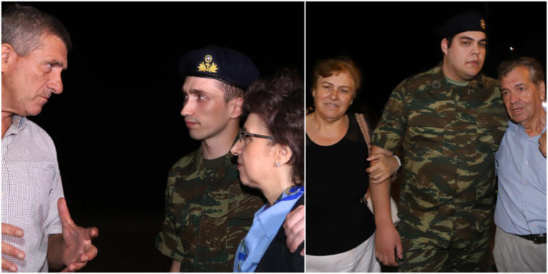 Λίγο πριν από τις 4 τα ξημερώματα, ο Άγγελος Μητρετώδης και ο Δημήτρης Κούκλατζης, φορώντας τις στολές τους, κατέβηκαν από το προεδρικό αεροσκάφος, με άγημα του στρατού να τους αποδίδει τιμές. Στη συνέχεια, οι δύο στρατιωτικοί είχαν ολιγόλεπτες συνομιλίες με τον Πάνο Καμμένο και τον αρχηγό ΓΕΣ, Αλκιβιάδη Στεφανή, ενώ αμέσως μετά έφτασε η στιγμή που περίμεναν καιρό. Έτρεξαν στους γονείς τους που τους αγκάλιασαν σφιχτά, εμφανώς συγκινημένοι.
