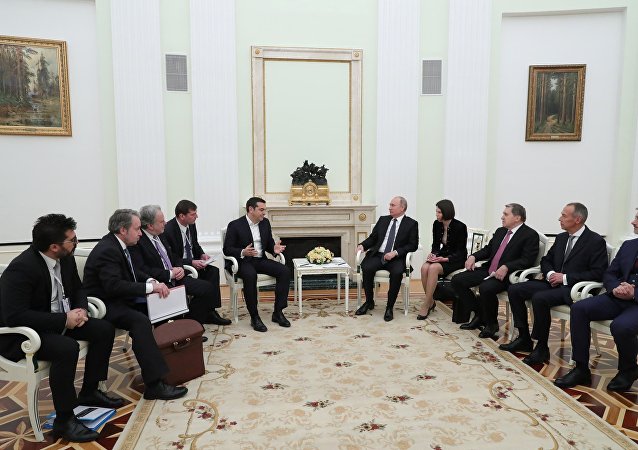 Σε εξέλιξη βρίσκεται η συνάντηση του Έλληνα πρωθυπουργού, Αλέξη Τσίπρα, με τον Ρώσο Πρόεδρο, Βλάντιμιρ Πούτιν, στο Κρεμλίνο.