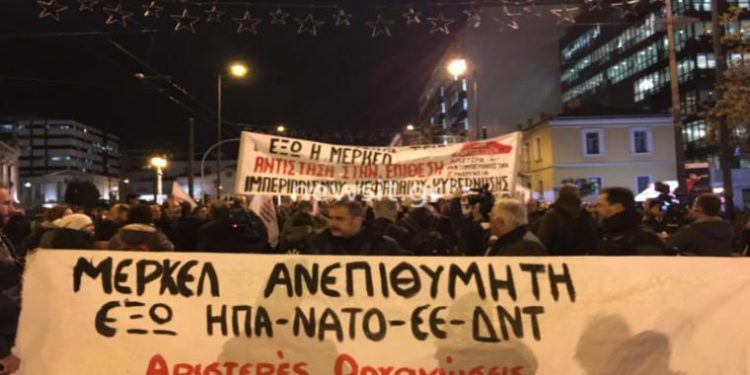Σύμφωνα με ανακοινωση που εξέδωσαν οι συλλογικότητες της αριστερας, «για πρώτη φορά μετά το 2014, και αφού το «Go Back» του Τσίπρα προς τη Μέρκελ το 2014 έχει μετατραπεί σε πλήρη υποταγή του στα συμφέροντα του ντόπιου και Ευρωπαϊκού Κεφαλαίου και των Αμερικάνων ιμπεριαλιστών των ΗΠΑ, η Μέρκελ έρχεται στη χώρα μας, με σκοπό να προωθήσει τα ιδιαίτερα συμφέροντα της γερμανικής πολιτικής στα Βαλκάνια και την περιοχή της Ανατολικής Μεσογείου».
