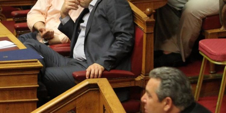 Ο ΥΕΘΑ Πάνος Καμμένος έδωσε δραματικό τόνο στην ομιλία του για να δικαιολογήσει την κυβερνητική «στροφή» και την αποδοχή της συμφωνίας-μνημόνιο που βρίσκεται υπό διαπραγμάτευση. Ο Καμμένος είπε ότι δεν θα φοβόταν τον Grexit αν δεν τον τρόμαζε η ιδέα του «διχασμού και του εμφυλίου». Αιτιολόγησε τους φόβους του λέγοντας ότι οι πολίτες δεν δείχνουν έτοιμοι να αντέξουν μια πραγματικότητα με «κλειστές τράπεζες».