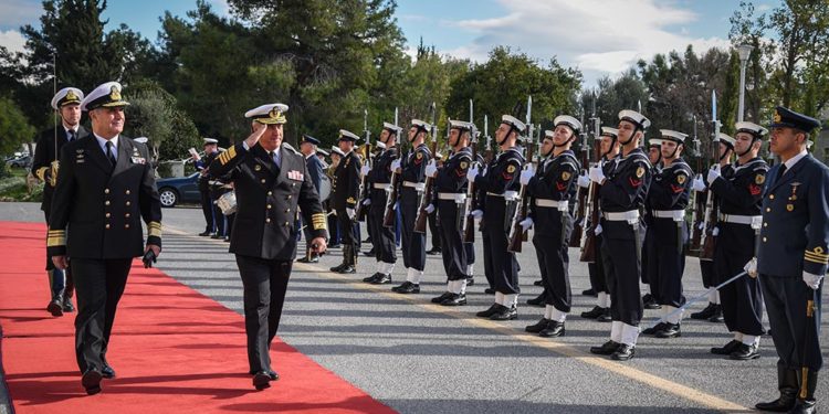 Στη συνέχεια συναντήθηκε με τον Αρχηγό ΓΕΕΘΑ Ναύαρχο Ευάγγελο Αποστολάκη ΠΝ.